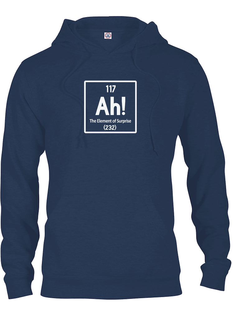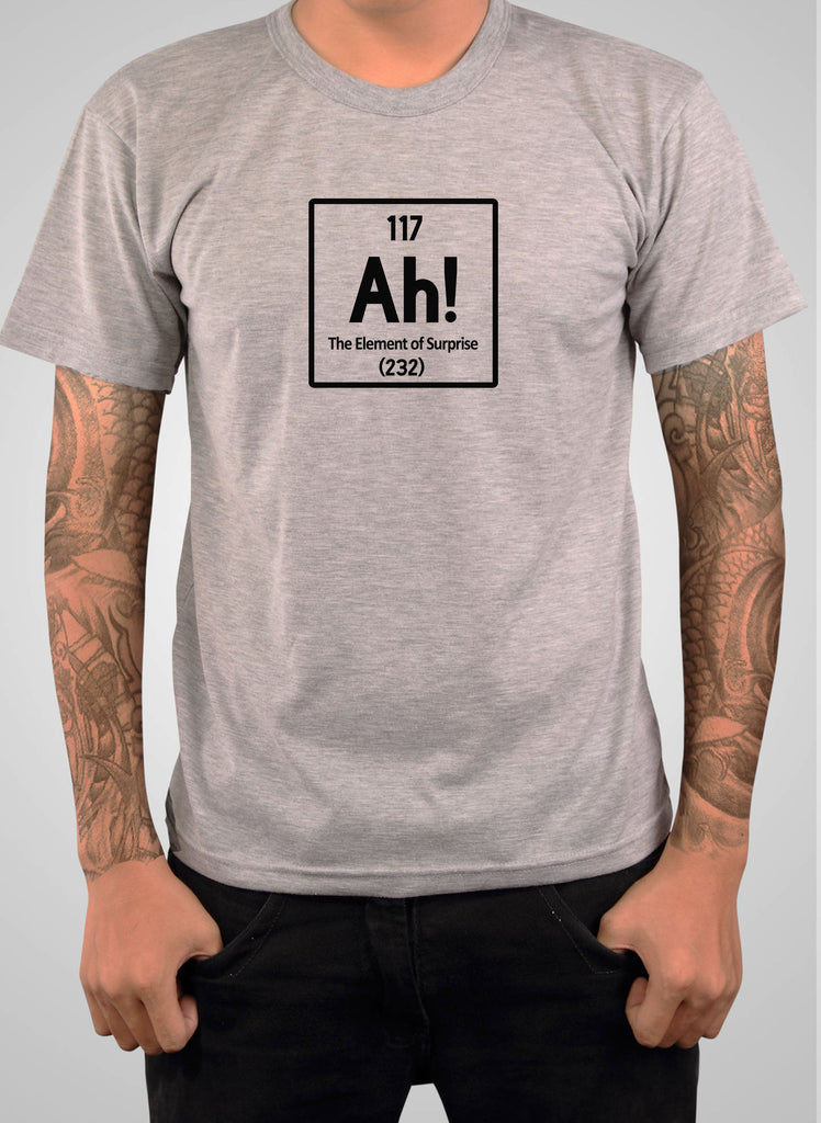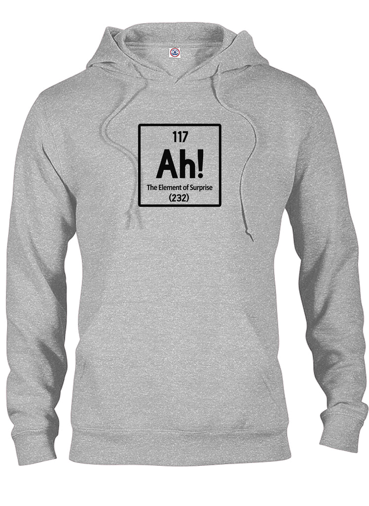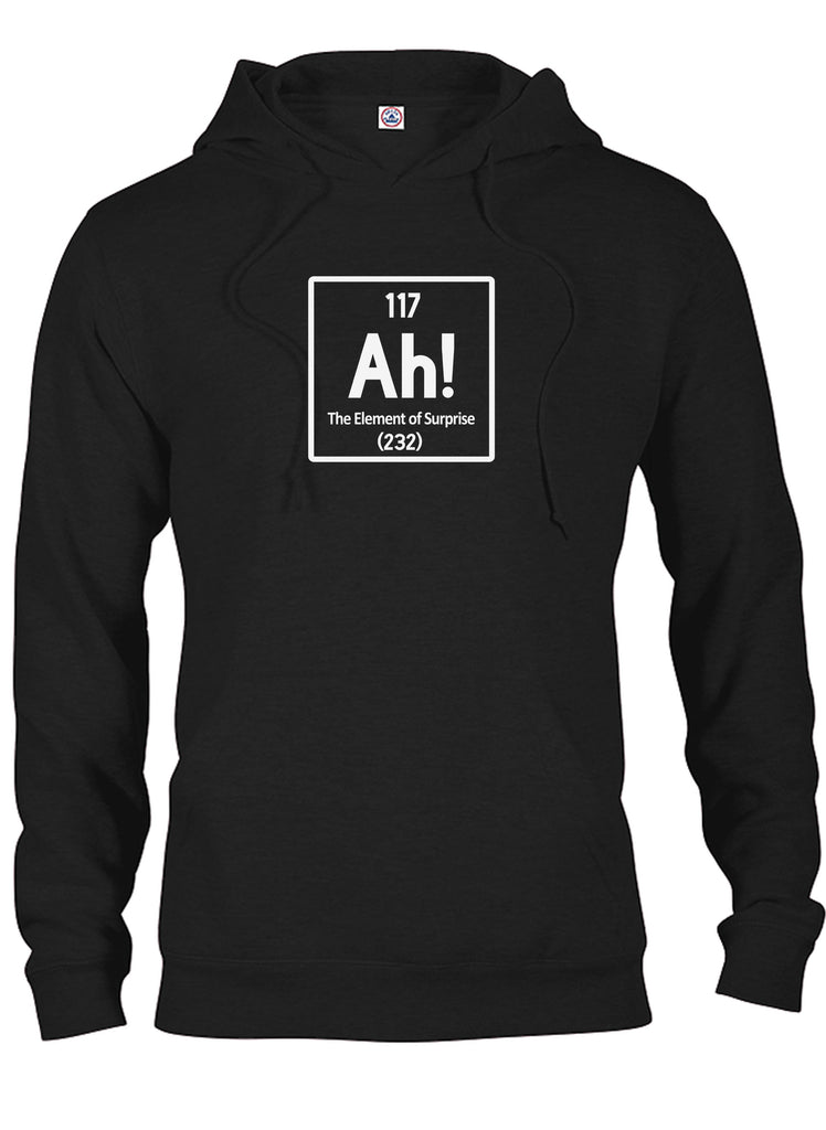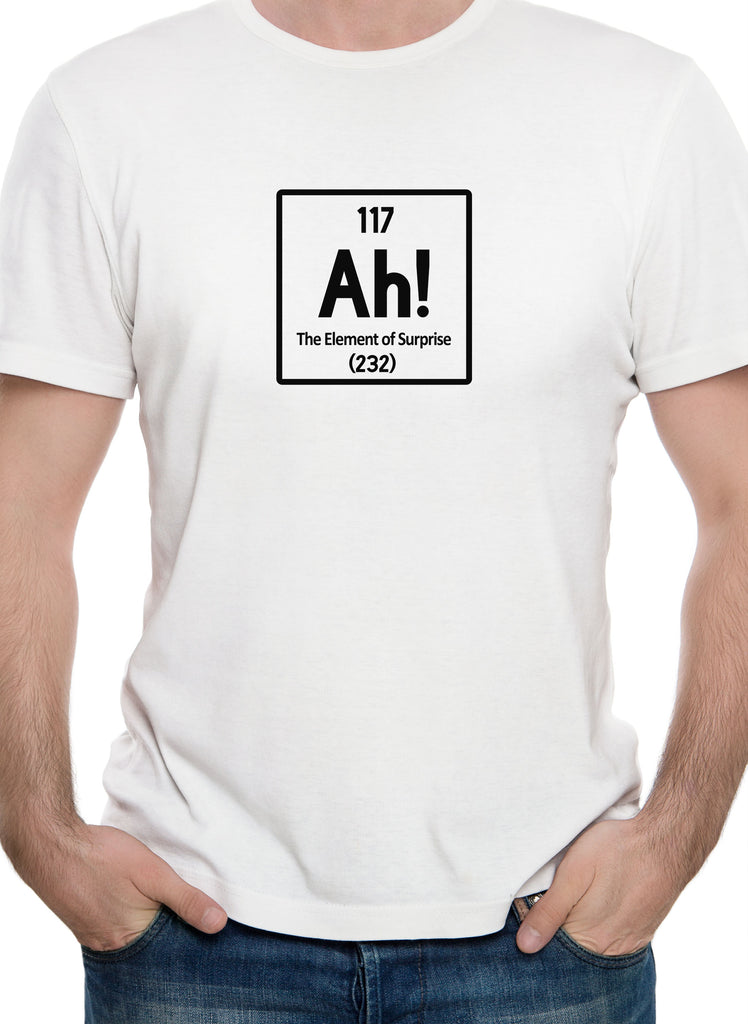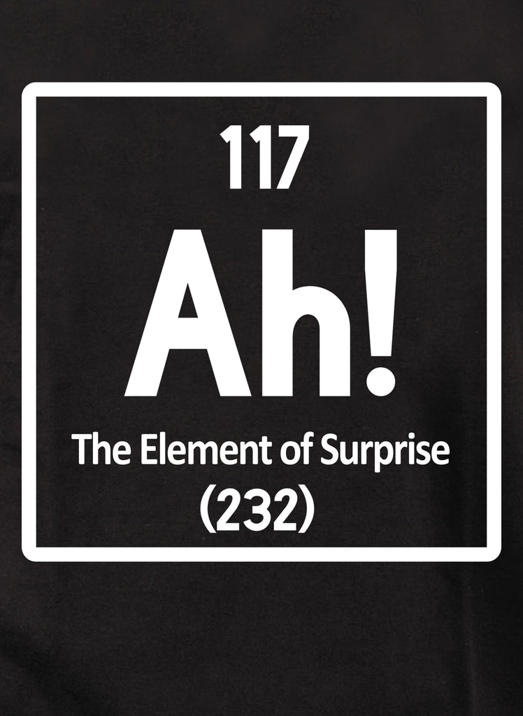 Elementary, dear Watson: the element of surprise is nowhere on the Periodic Table, but that's okay. That's why it's surprising. It was hiding UNDER the periodic table. Don't you ever pay attention?