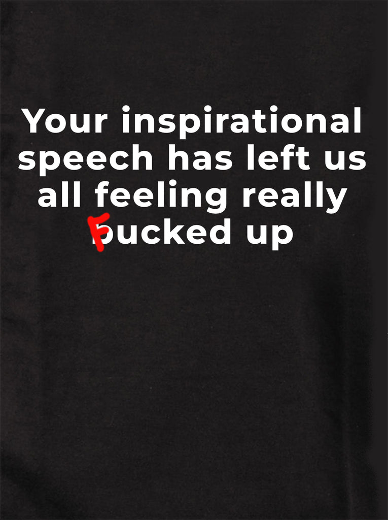 The Your Inspirational Speech Kids T-Shirt is a clever, tongue-in-cheek take on workplace humor—mini-sized for the next generation of eye-rollers and sarcasm pros. Whether it’s worn as a subtle joke for adults in the room or just a fun graphic tee for everyday wear, this shirt turns classic workplace sarcasm into something playful and wearable. It’s a reminder that inspiration doesn’t always land the way it’s intended—and that humor, even in its smallest form, can say a lot.