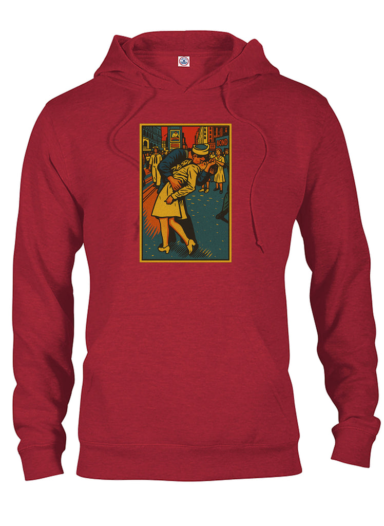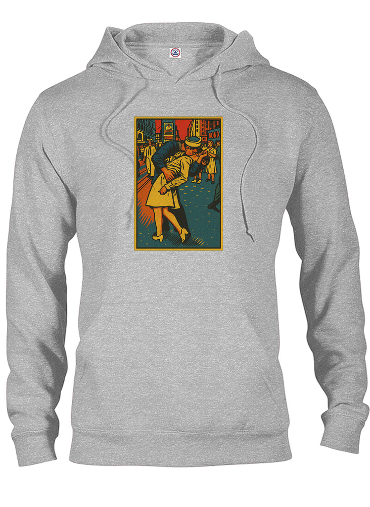 This statement invites you to carry a piece of history with you, to remember that even in the darkest times, humanity finds a way to celebrate love, hope, and new beginnings. Wear it proudly and let it remind everyone who sees it that sometimes, one kiss really can mark the start of something better.