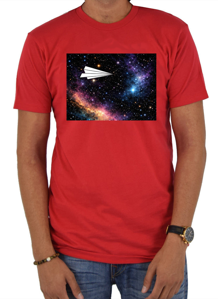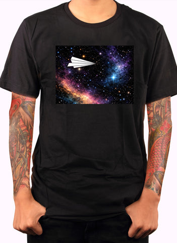 Soar into the cosmos with the Space Flight T-Shirt, a stunning blend of art, imagination, and celestial wonder. This unique t-shirt features a charming paper airplane taking flight amidst a backdrop of stars, planets, and distant galaxies, capturing the playful spirit of childhood creativity in an infinite universe. The design celebrates exploration and the freedom to dream beyond earthly limits, making it perfect for space enthusiasts, art lovers, and anyone captivated by whimsical, thought-provoking designs.