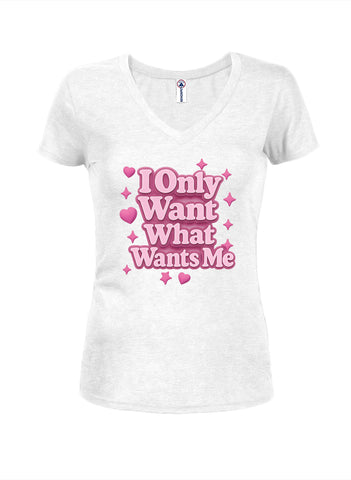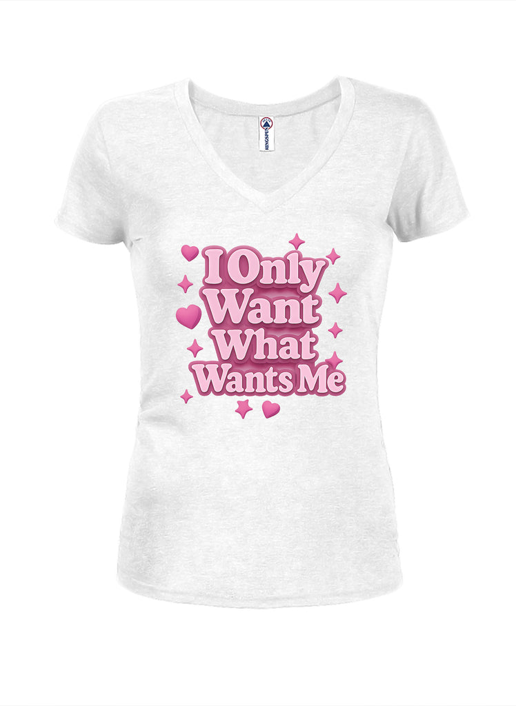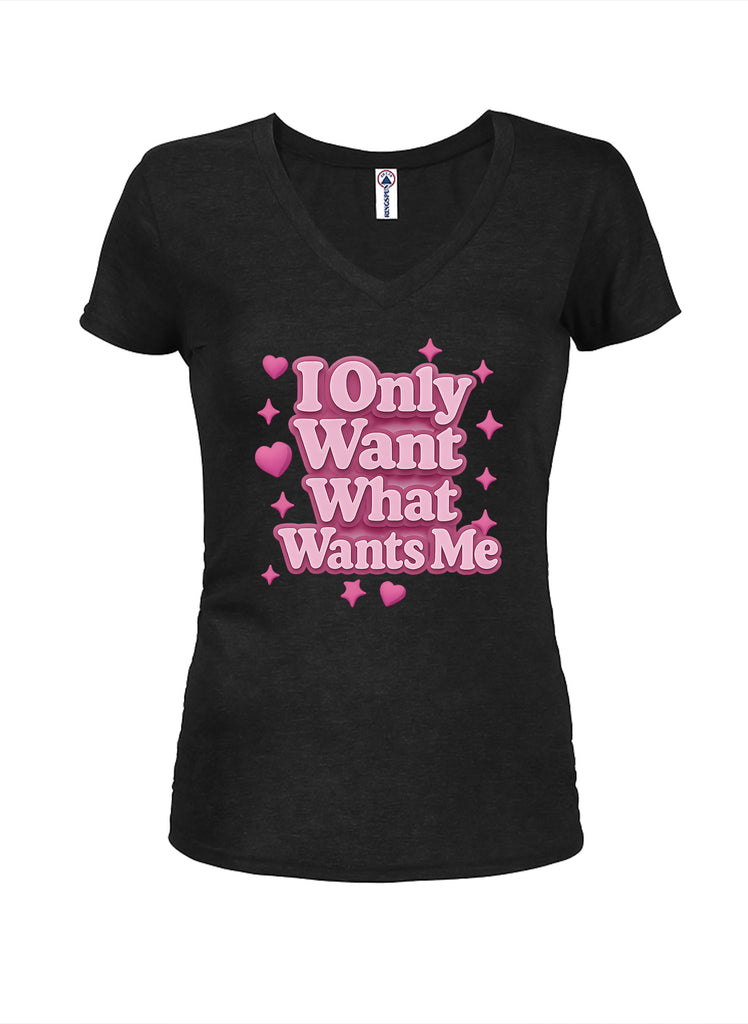 I Only Want What Wants Me Pink Text Juniors V Neck T-Shirt