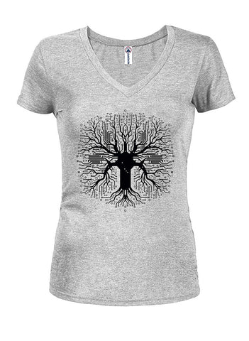 Unleash a bold fusion of creativity, nature, and technology with the Power Tree Juniors V-Neck T-Shirt, a stunning art-inspired piece designed for young trendsetters who love wearing meaning as much as style. This unique design transforms the classic silhouette of a tree into an intricate digital masterpiece, where each branch flows outward like a web of interconnected circuits.