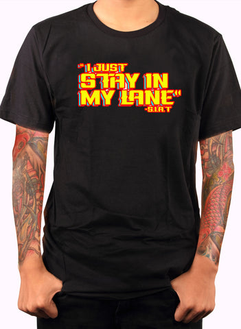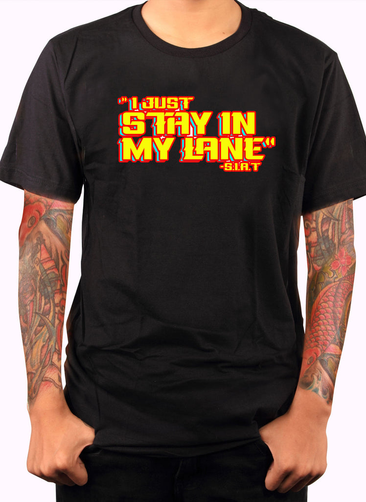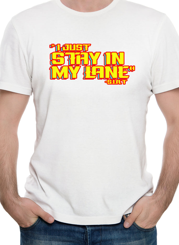 Rendered in vibrant yellow and red block letters with a striking blue accent, the artwork visually mirrors the energy of a track that celebrates focus, discipline, and personal growth. Perfect for casual streetwear, concerts, or creative sessions, this tee serves as a daily reminder to keep your head up, eyes forward, and energy locked on your own lane.