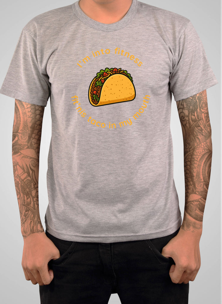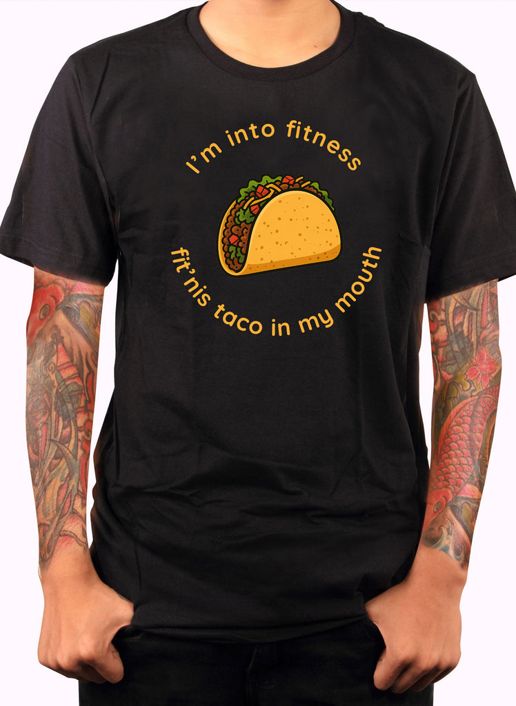 Add some humor to your wardrobe with the I’m Into Fitness Taco T-Shirt, a must-have for anyone who loves clever memes and delicious food. This funny t-shirt features a bold, eye-catching design with a fully-loaded taco illustration front and center, surrounded by the playful phrase: “I’m into fitness… fit’nis taco in my mouth.” The vibrant taco graphic includes all the mouthwatering details—juicy meat, crisp lettuce, diced tomatoes, shredded cheese, and a perfectly golden taco shell—that immediately make you smile and maybe even crave Taco Tuesday.
