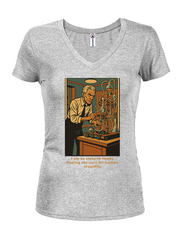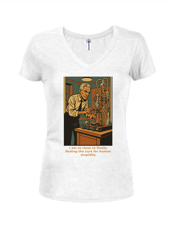 I am so close to finally finding the cure for human stupidity Juniors V Neck T-Shirt