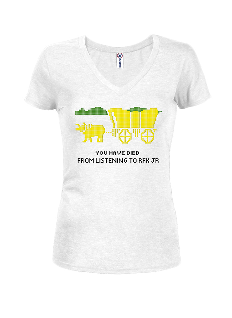 The RFK Oregon Trail Juniors V-Neck T-Shirt is a perfect blend of retro gaming nostalgia, pop-culture satire, and a touch of American history—all wrapped in a flattering juniors V-neck style. Inspired by the iconic Oregon Trail computer game that once dominated school computer labs, this design channels the unmistakable look of classic 8-bit graphics, pixelated characters, and the unforgettable moments when a long journey ended with a blunt, darkly funny message on screen.