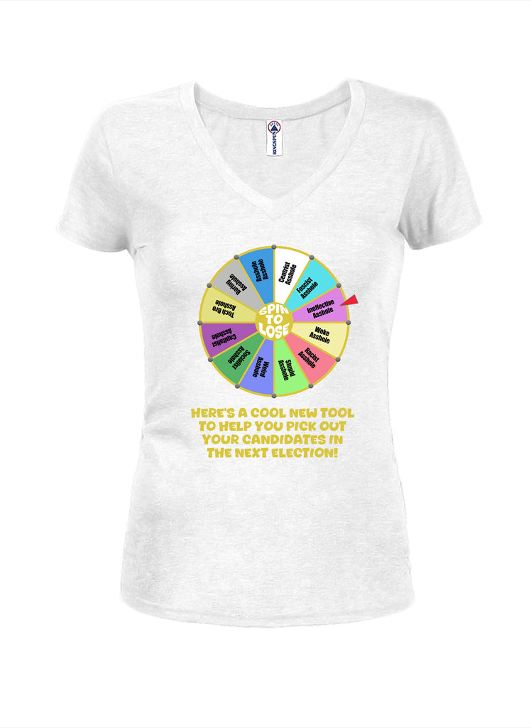 This juniors t-shirt is designed for those who prefer humor over heated debate. Instead of taking sides, the Election Spin to Lose design pokes fun at the entire process, making it relatable for voters across the spectrum. Perfect for election years, civic events, or simply surviving nonstop political headlines, the Election Spin to Lose Juniors V-Neck T-Shirt makes a great gift for sarcastic friends, politically aware siblings, or coworkers who appreciate smart humor. Whether you follow politics closely or are just exhausted by it, this shirt turns shared frustration into a laugh.