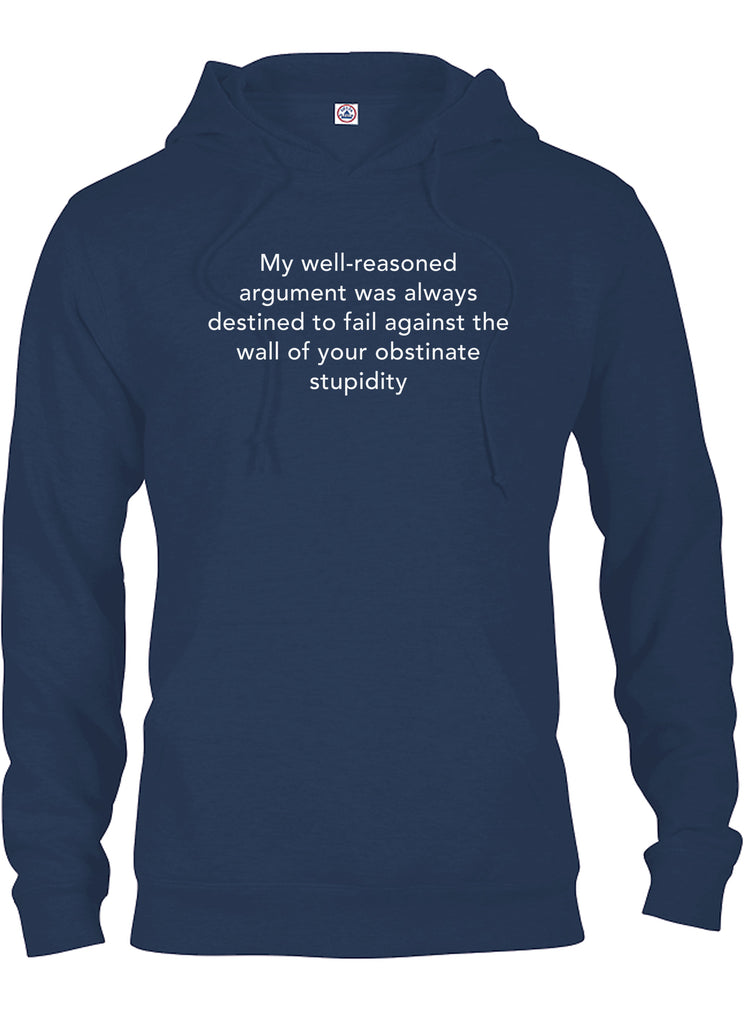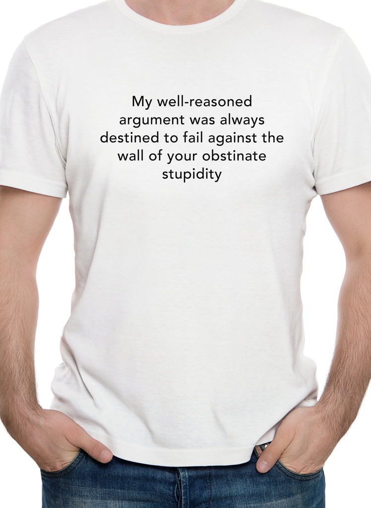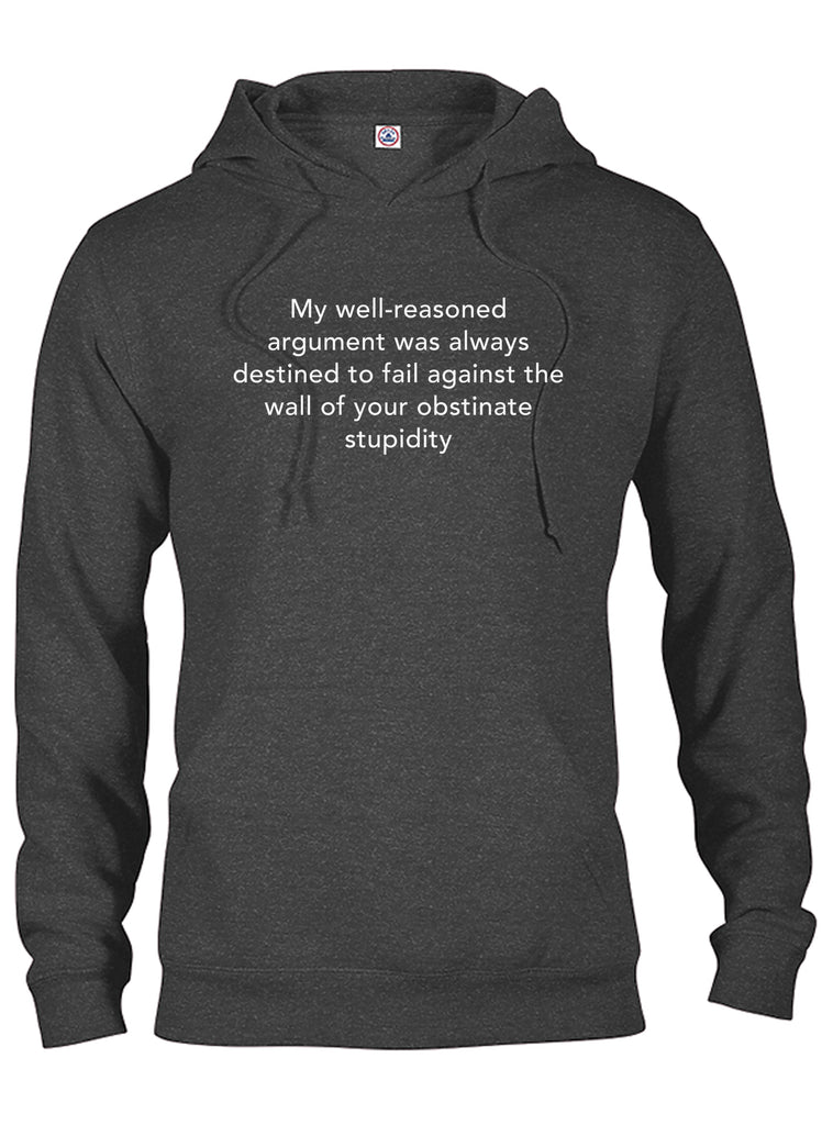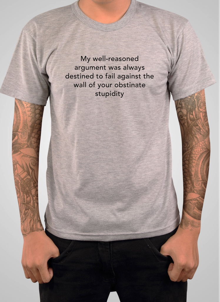 Make a bold, hilarious statement with the My Well-Reasoned Argument Was Always Destined to Fail T-Shirt, a must-have piece for anyone who has ever tried to explain logic to someone who simply refuses to listen. Inspired directly by the sharp, witty phrase displayed on the design, this shirt perfectly captures that moment when intelligence meets an immovable wall of stubbornness—and loses spectacularly.