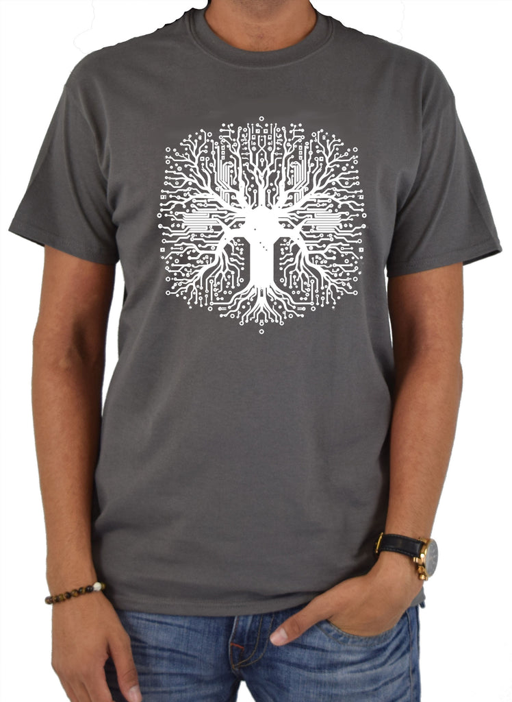 Discover the perfect blend of nature-inspired artistry and futuristic design with the Power Tree T-Shirt, a bold and innovative piece in the art category that celebrates the harmony between organic life and modern technology. This striking design features a powerful tree silhouette, but instead of traditional branches, its limbs flow outward like interconnected circuitry—symbolizing growth, energy, and the unstoppable spark of creation.
