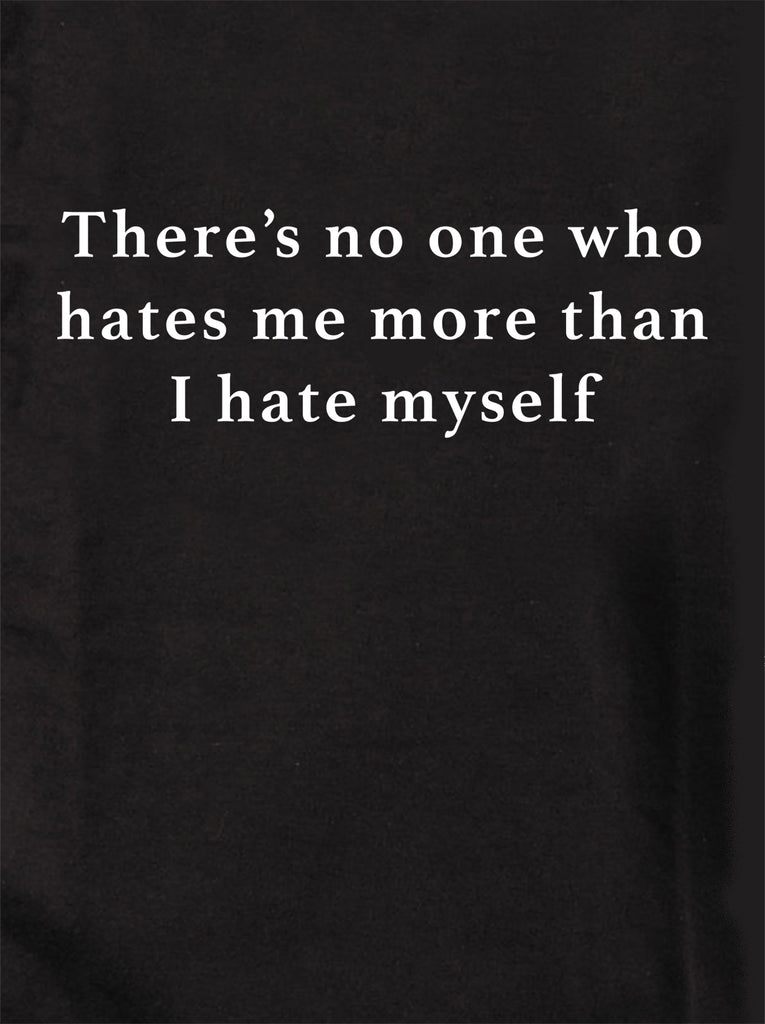 Designed to be funny, dramatic, and intentionally exaggerated, the phrase “There’s no one who hates me more than I hate myself” is presented in a way that reads as cartoonish humor rather than literal meaning—similar to the kind of playful exaggeration kids use when they say things like “this is the worst day ever” over something small. It’s silly, ironic, and meant to get laughs from parents, older siblings, and anyone who appreciates dry humor with a twist.
